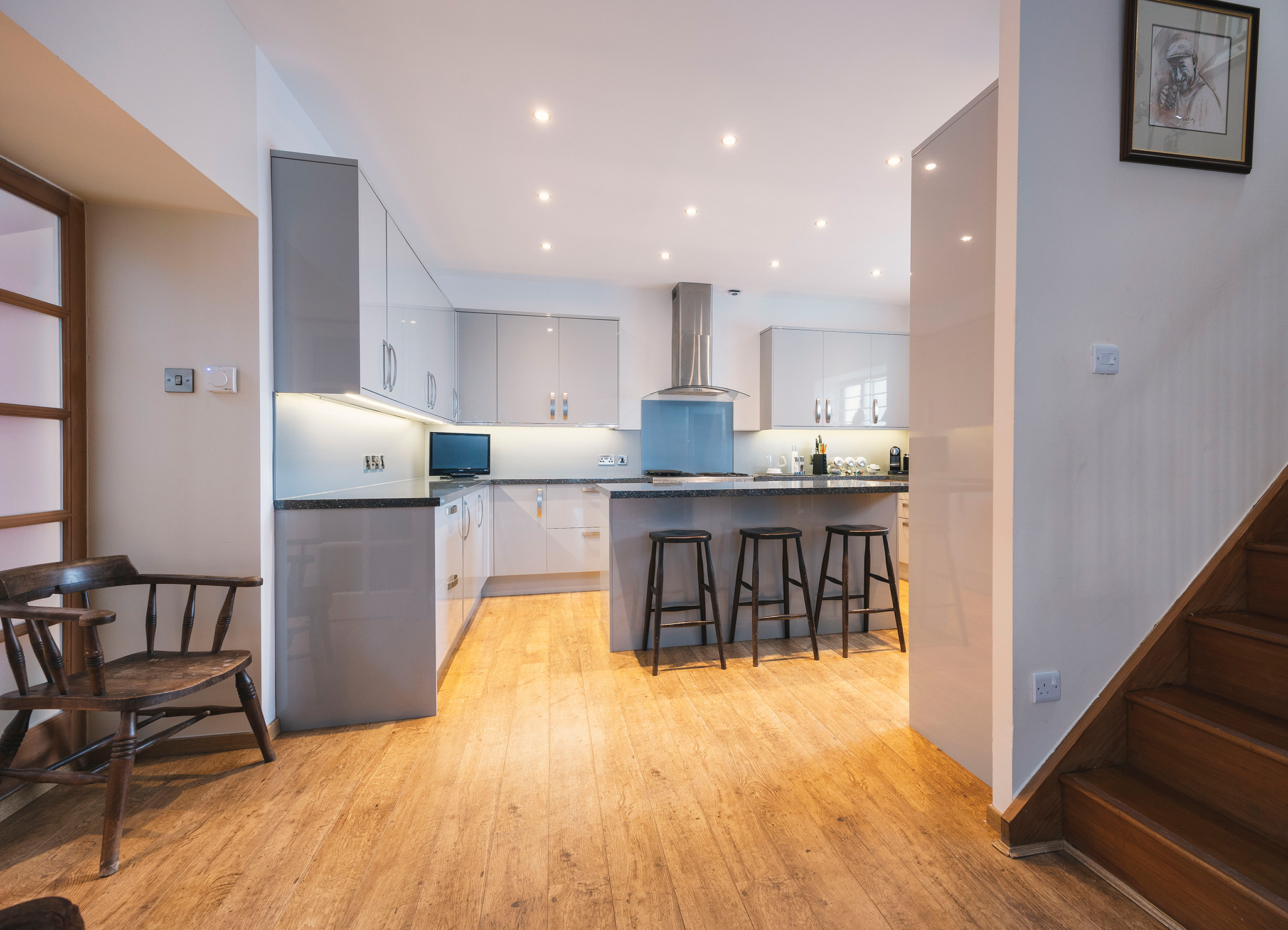 Just 5 minutes’ walk from Montpellier, this deceptively large historic building has been completely modernised internally to provide spacious open-plan living accommodation with a huge kitchen on the ground floor and three bedrooms upstairs – each with its own bathroom – and a study area.